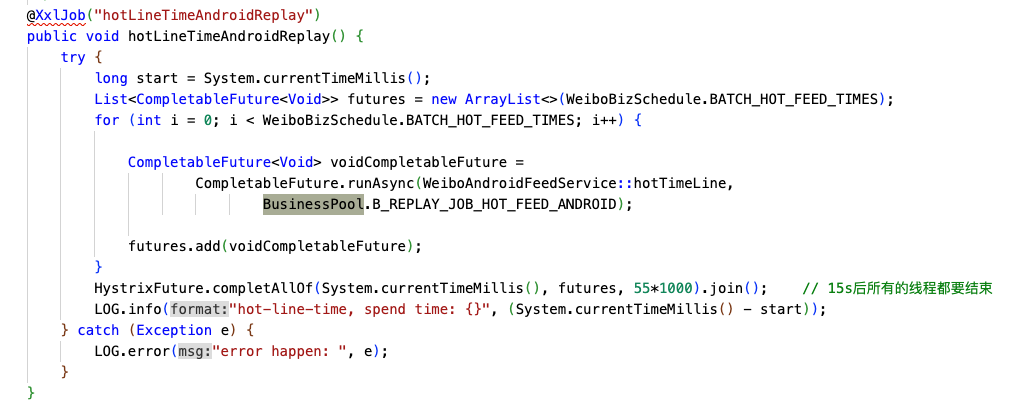 CompletableFuture.runAsync(weiboIosFeedService::hotTimeLine,