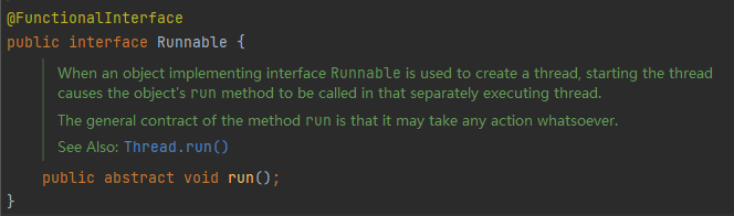 Thread 的构造方法: 因此,在构造时,只能传入 Runnable 类型的对象实例