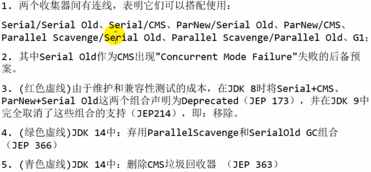 - JDK14完全移除CMS,用户使用-XX:+UseConcMarkSweepGC显式开启CMS收集器时,不会收到提示,会自动使用默认的垃圾收集器进行收集