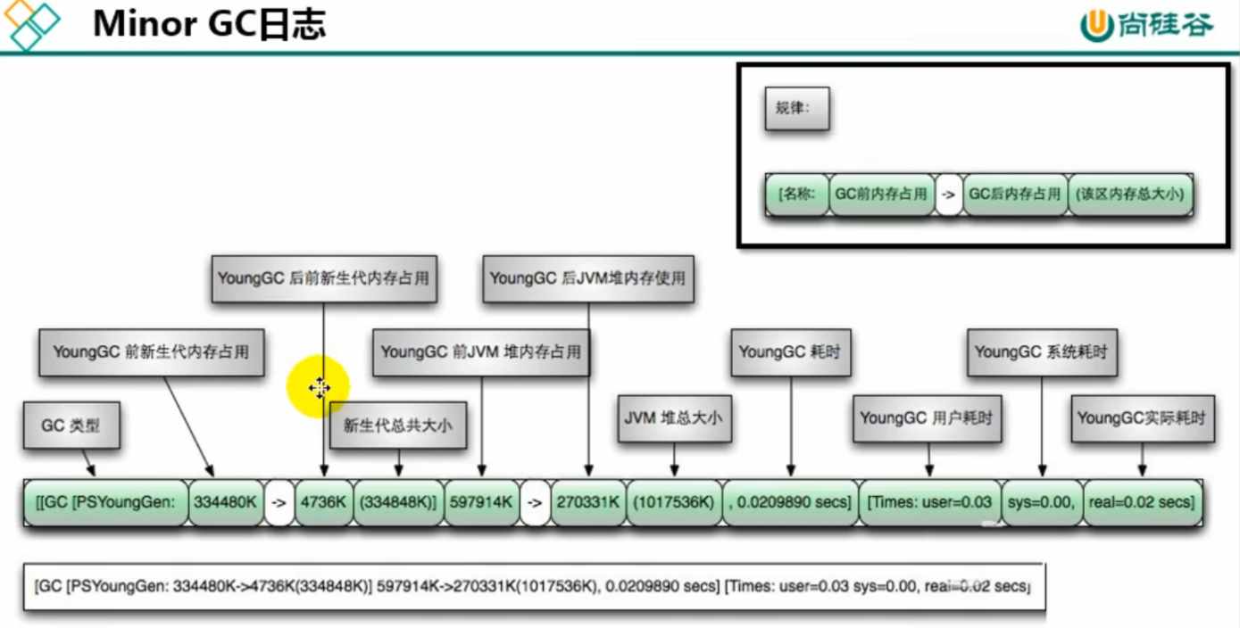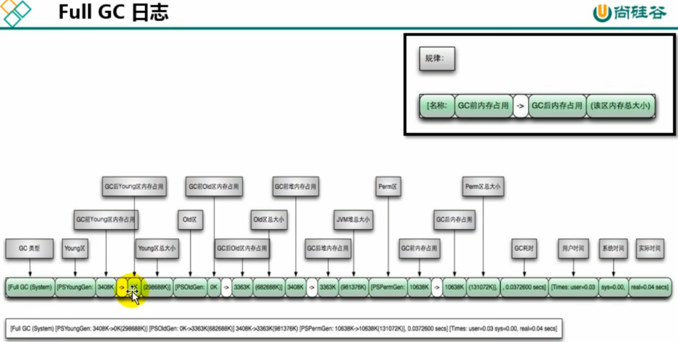 【[PSYoungGen: 262144K->43503K(305664K)]】 表示新生代使用的是ParraleScavenge回收器,262144K->43503K,表示从262144K回收到43503K,305664K表示新生代总容量