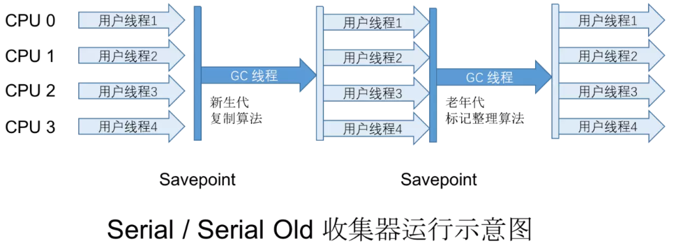 - 等价于新生代使用Serial收集器、老年代使用SerialOld收集器