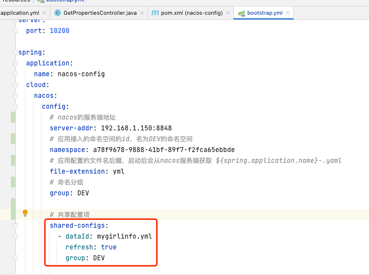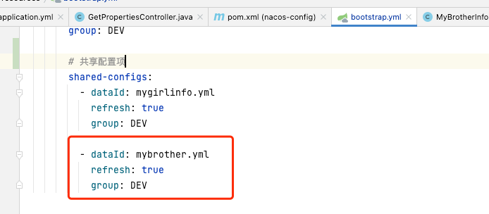 - 在 bootstrap.yml 中添加共享配置项的配置