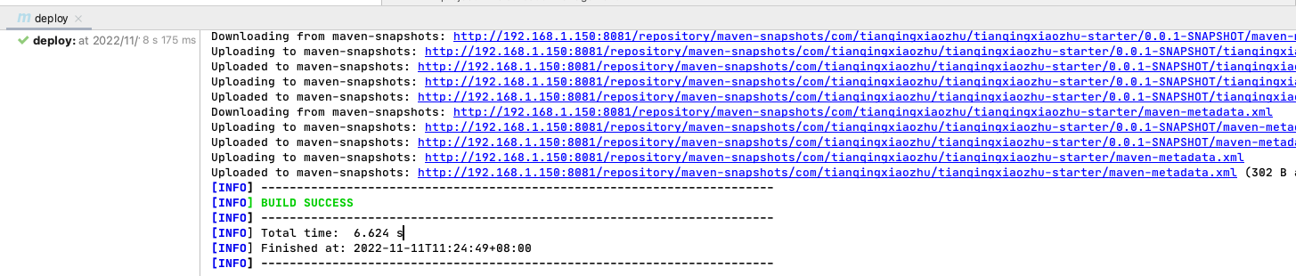 - 运行命令,发布到nexus私服上: