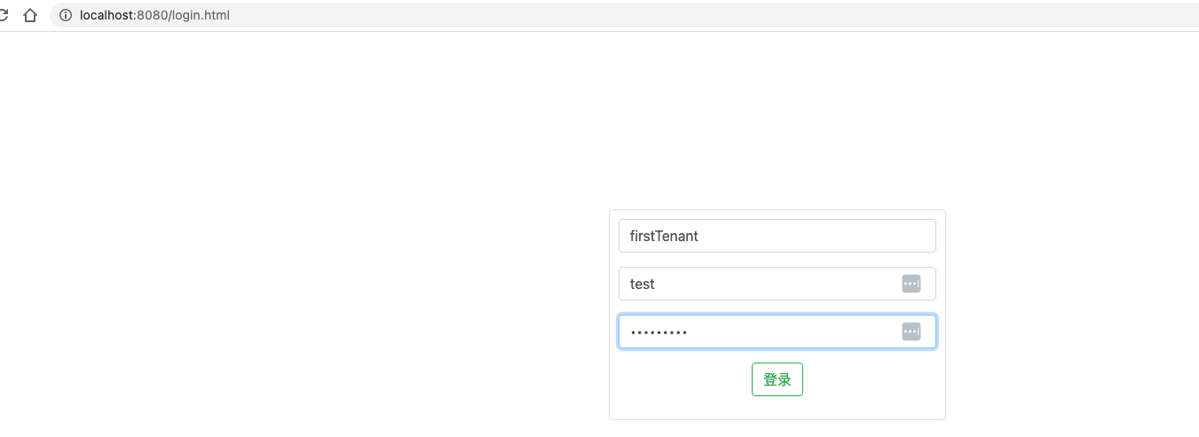 firstTenant作为租户id,使用test作为用户名,使用abc123456作为登陆密码。